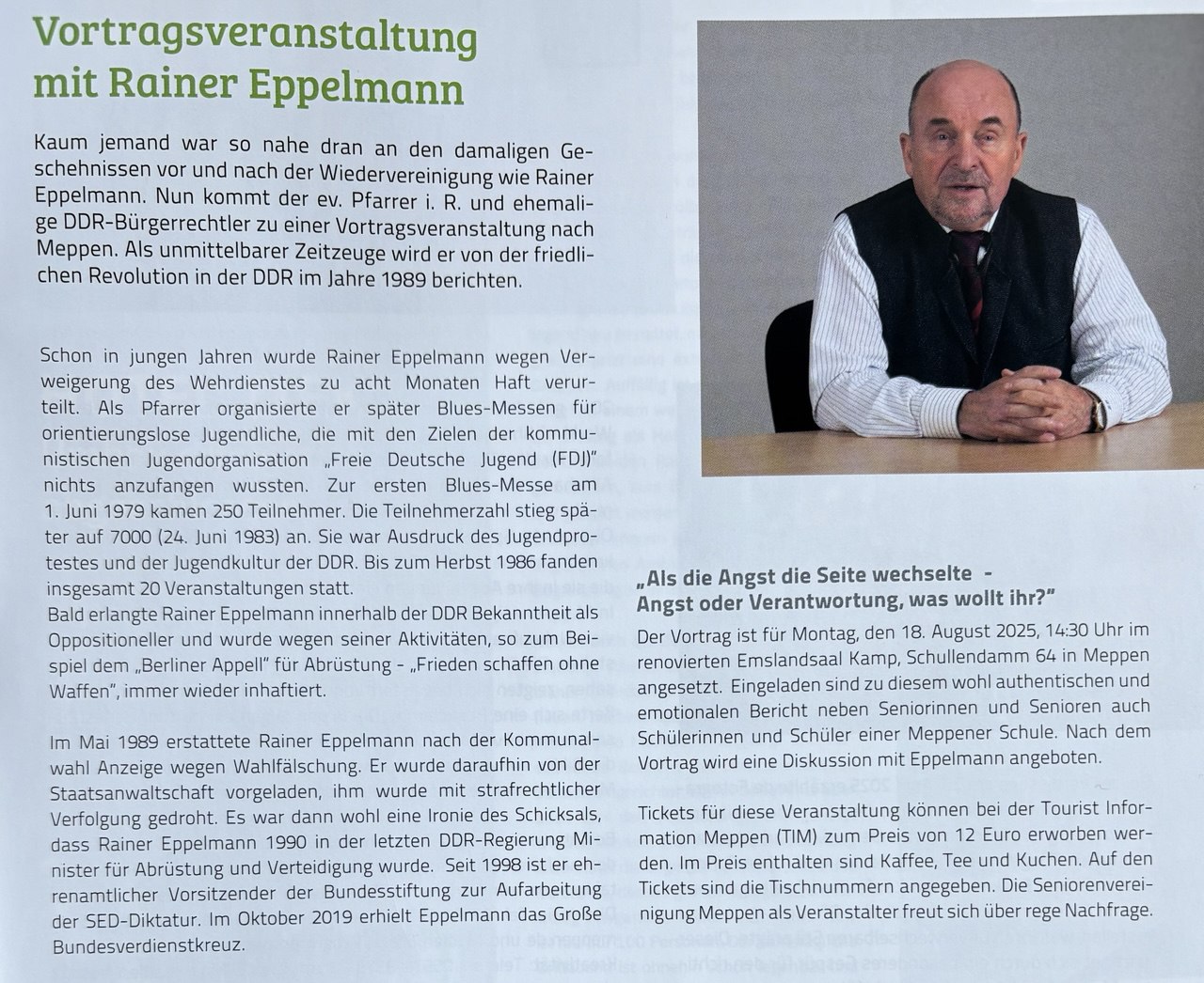 Die Mitgliederversammlung kann nicht im Ratssaal stattfinden, da an diesem Tag eine Haushaltsberatung mit dem gesamten Rat terminiert wurde. Stattdessen findet sie im JAM (Jugend- und Kulturzentrum Meppen), An der Bleiche 3, 49716 Meppen statt.